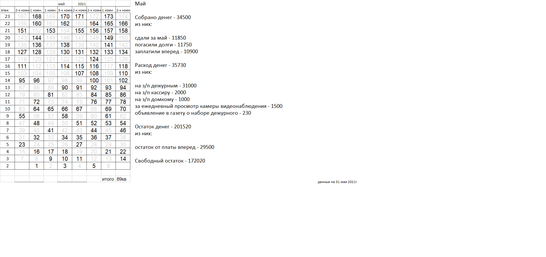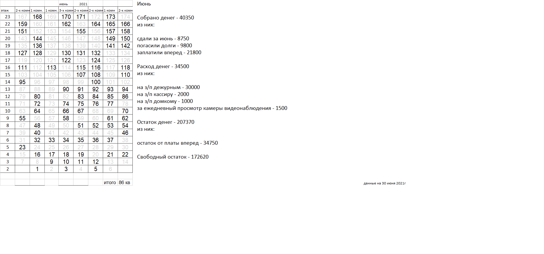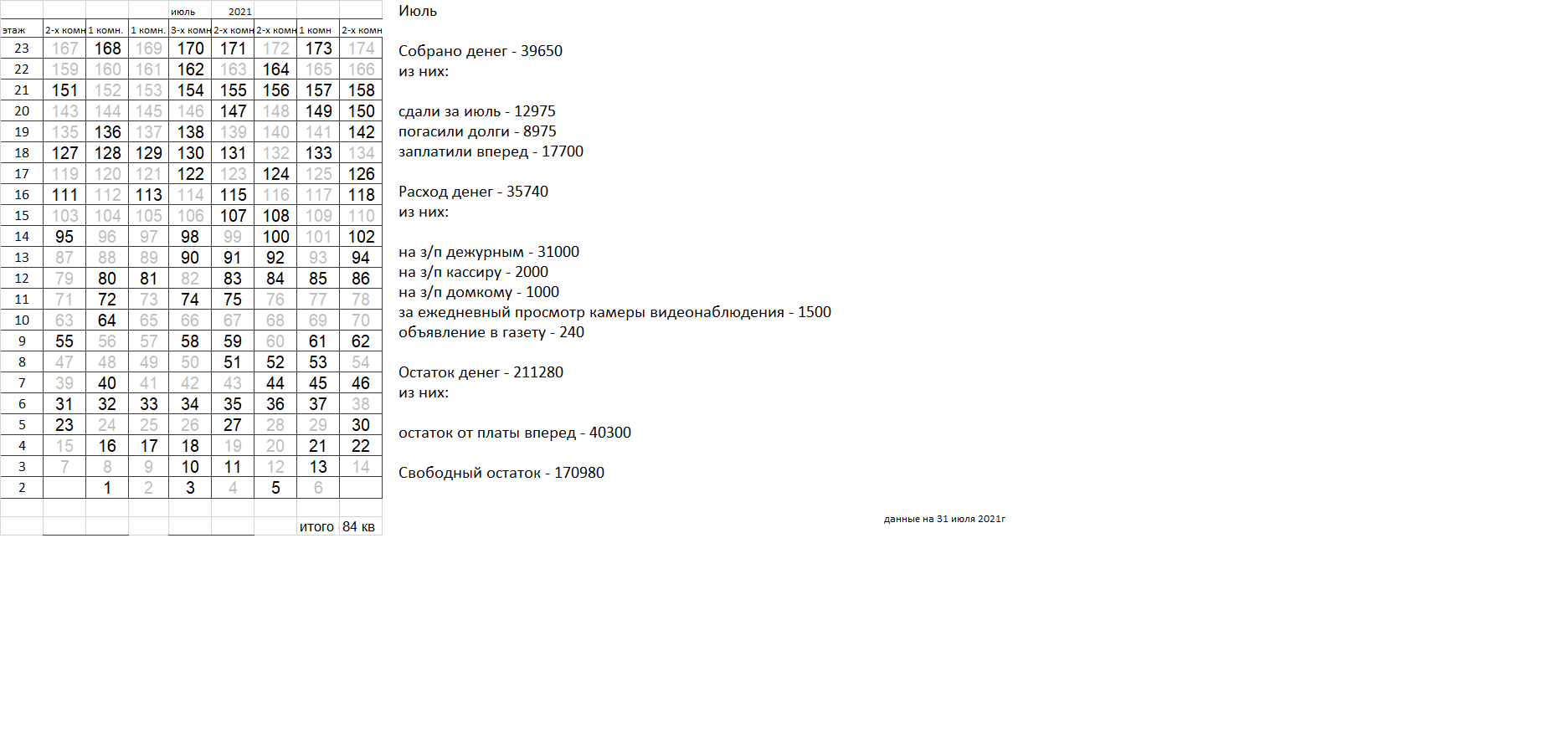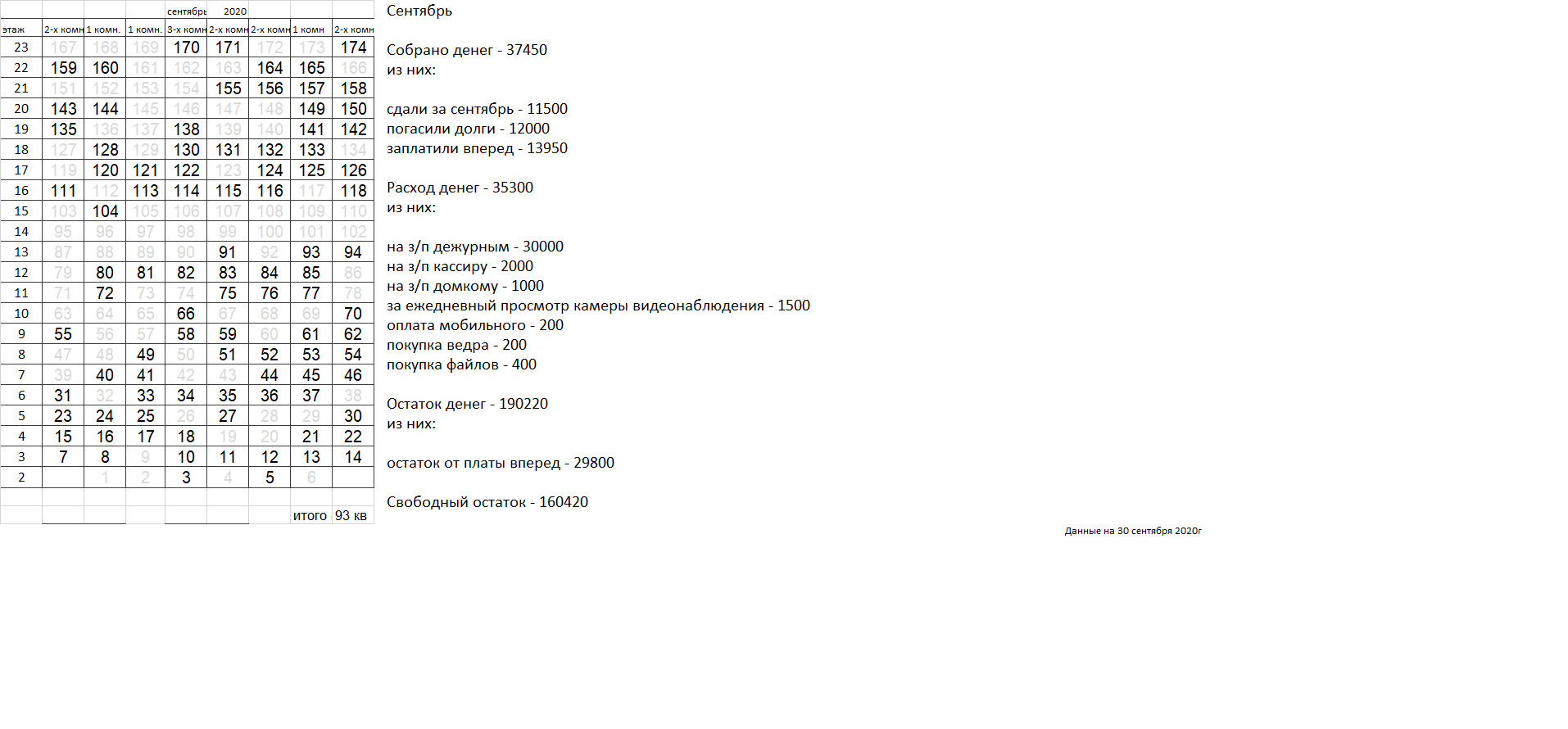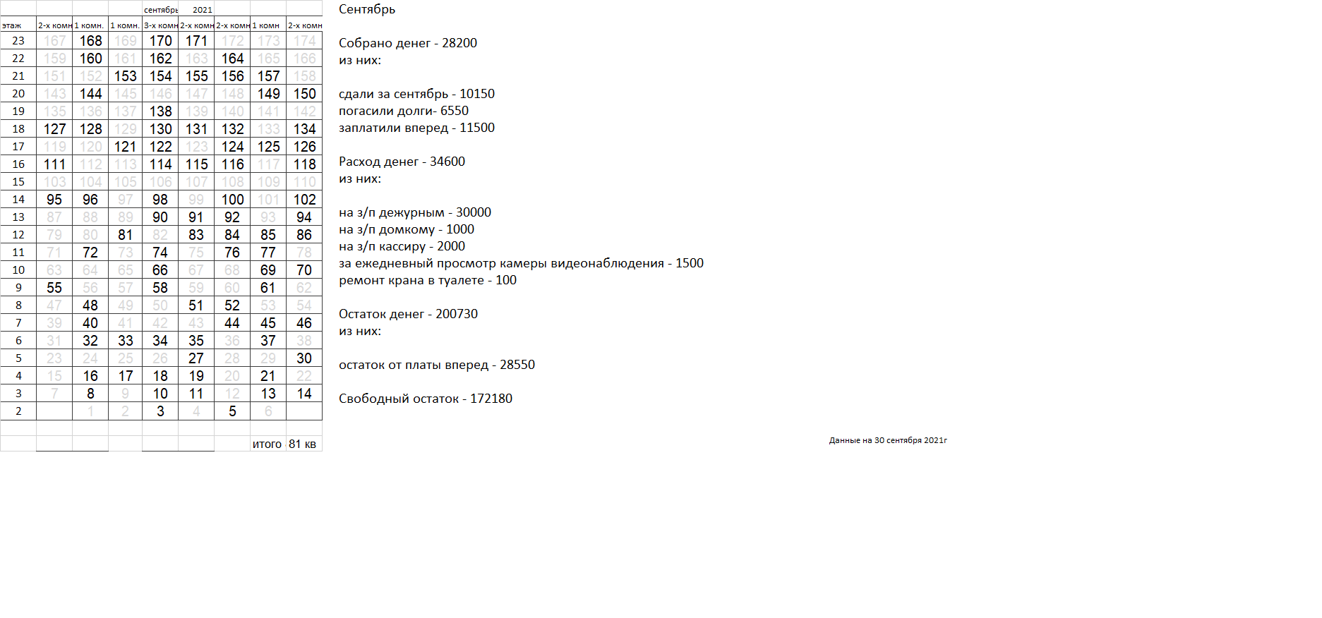 Уважаемые соседи. Сдаваемых денег катастрофически не хватает для найма вахтеров, которыми все были бы довольны. Домком пока пытается наладить службу охраны, но если в ближайшее время ситуация не улучшится, вахта будет закрыта, домком распущен. |