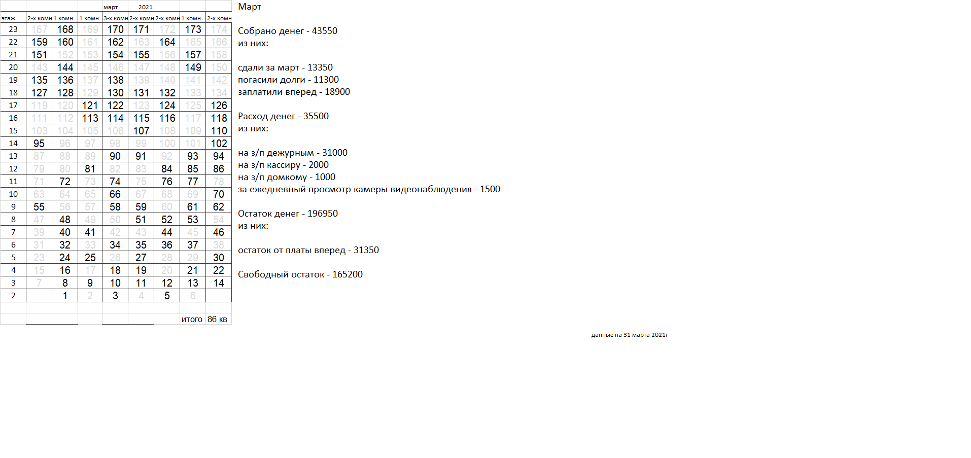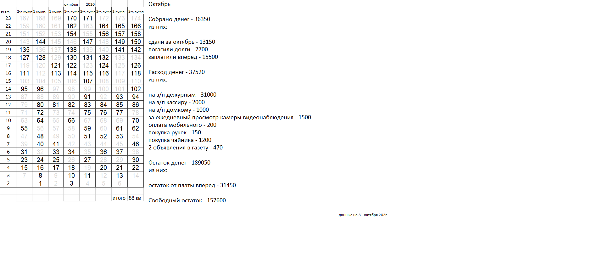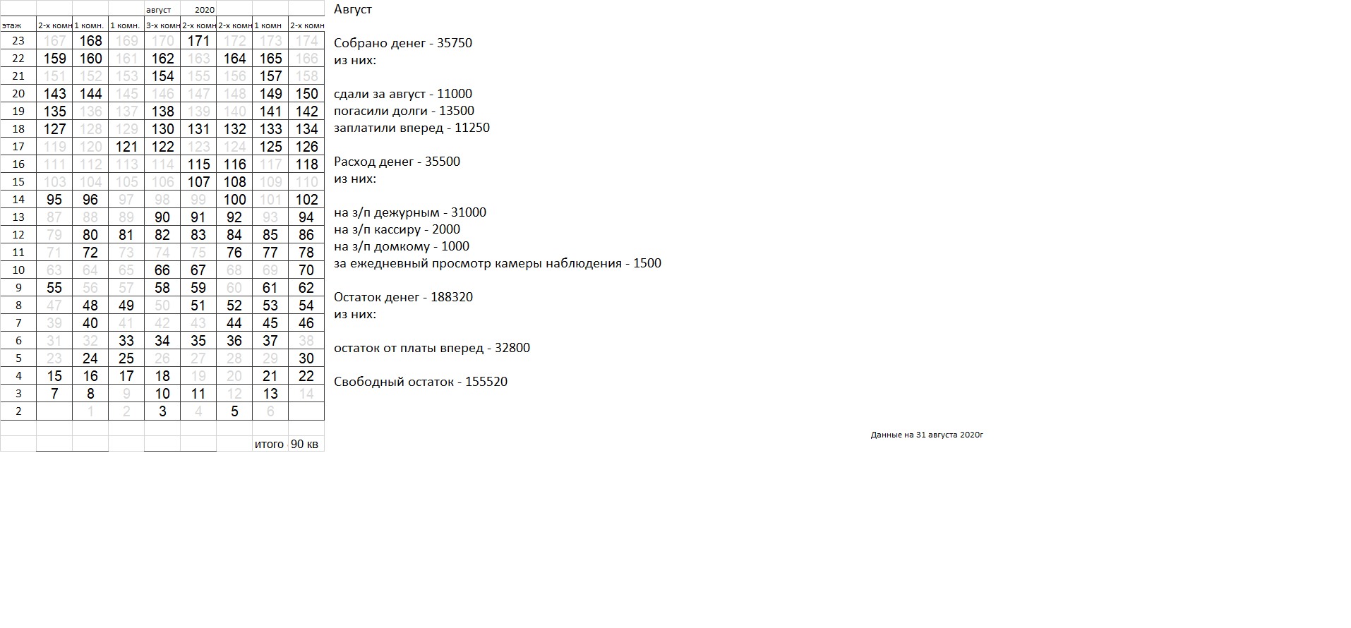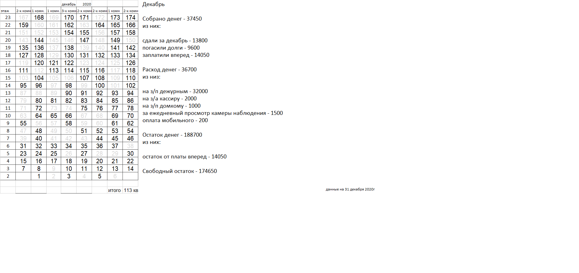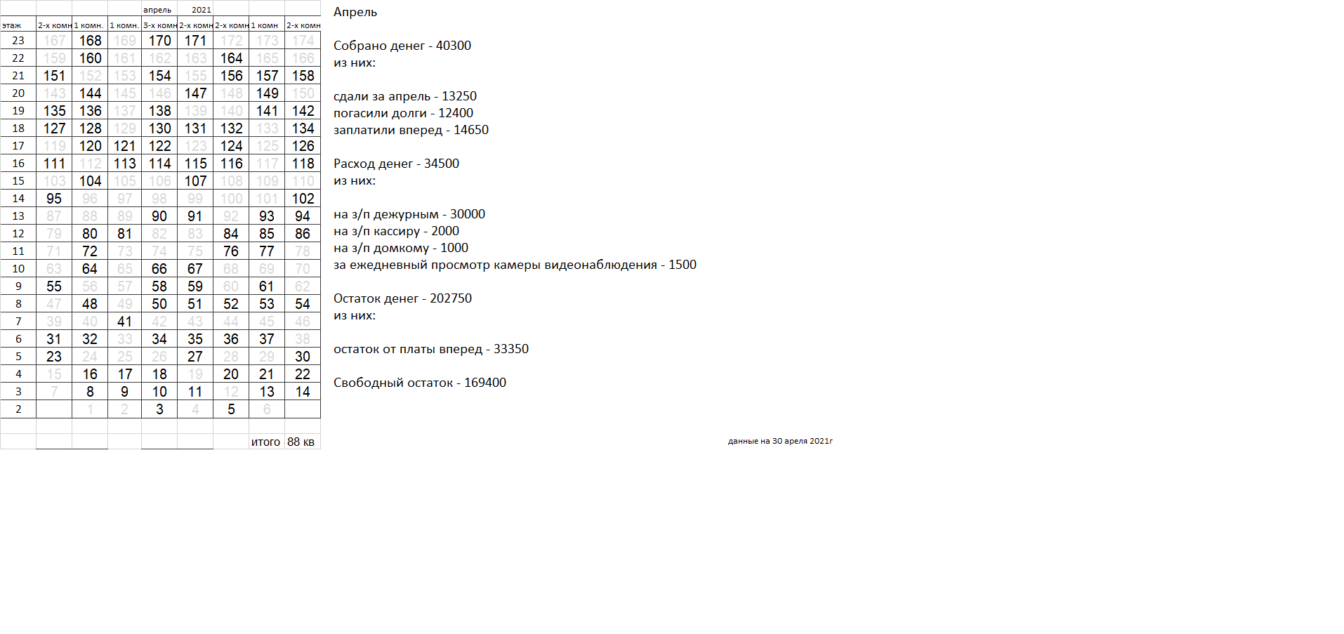 Уважаемые соседи. Сдаваемых денег катастрофически не хватает для найма вахтеров, которыми все были бы довольны. Домком пока пытается наладить службу охраны, но если в ближайшее время ситуация не улучшится, вахта будет закрыта, домком распущен. |